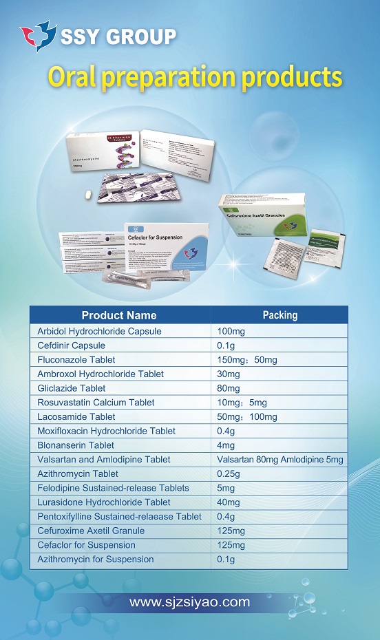 تتوفر في مصنعنا العديد من أنواع المستحضرات الفموية بما في ذلك الأقراص والكبسولات والحبيبات والمعلقات والسوائل الفموية. أقراص الباراسيتامول وأقراص أزيثروميسين وأقراص نيفيديبين شائعة في جميع أنحاء العالم. يتم استخدام أقراص فلوكونازول وأقراص ميترونيدازول وأقراص موكسيفلوكساسين لمكافحة العدوى. وهناك أيضًا أنواع كثيرة من أدوية القلب والأوعية الدموية مثل أقراص روسوفاستاتين الكالسيوم وأقراص فالسارتان وأملوديبين التي تم طرحها في السوق. اتصل بنا للحصول على مزيد من المعلومات.